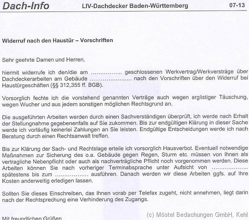 Widerruf nach Auftrag an eine unseriöse Dachdeckerfirma.