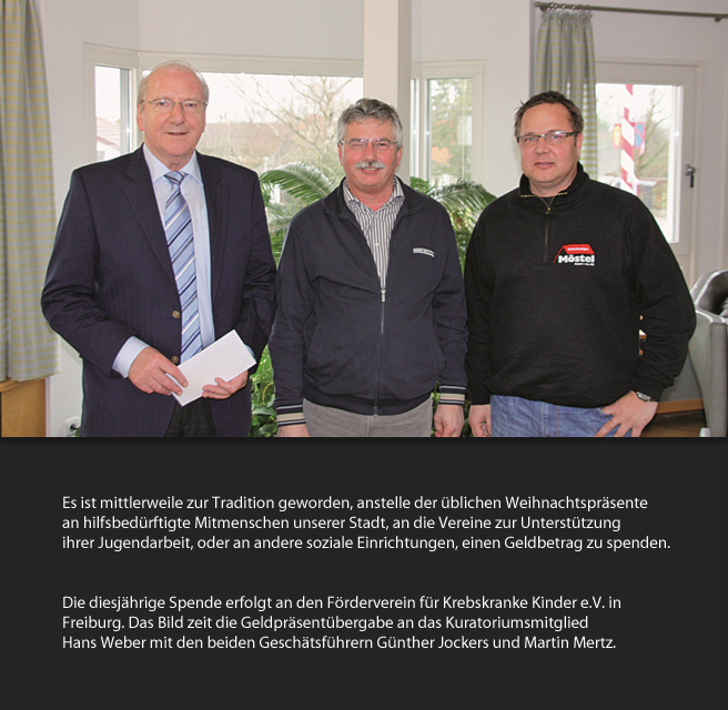 Geldpräsentübergabe an das Kuratoriumsmitglied Hans Weber