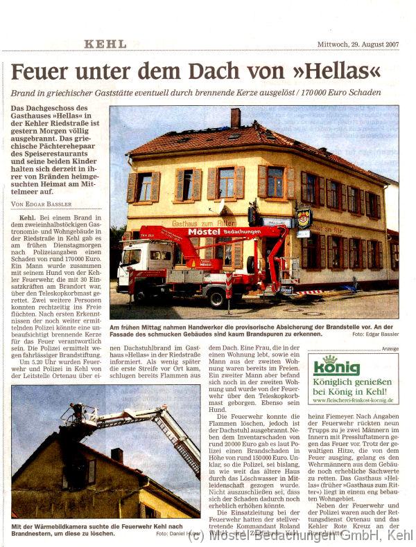 Feuer unter dem Dach von "Hellas"