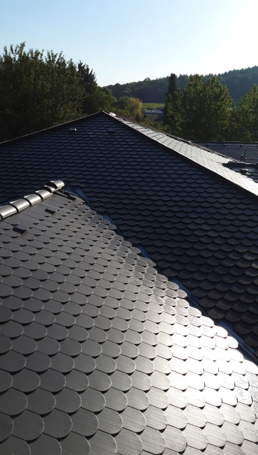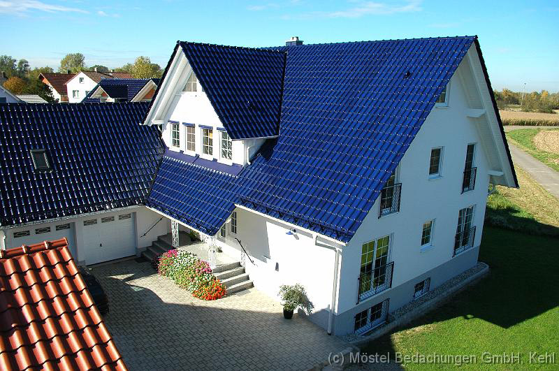 Kehl-Auenheim Dacheindeckung mit glasierten Trost Flachdachpfannen.